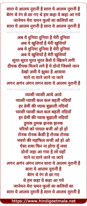 Lyrics of Saara Ye Aalam Naurani Hai - सारा ये आलम नूरानी है