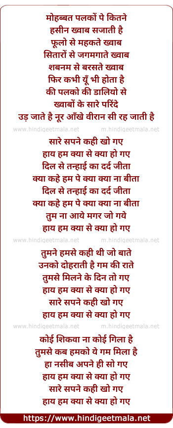 Lyrics of Saare Sapne Kahin Kho Gaye - सारे सपने कही खो गए