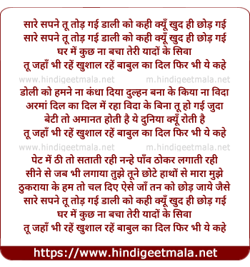 Lyrics of Sare Sapne Tu Tod Gayi - सारे सपने तू तोड़ गई