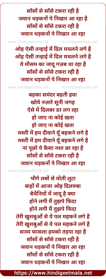 Lyrics of Saason Se Saasen - साँसों से साँसे