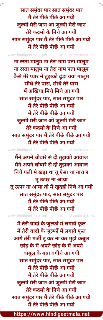 Lyrics of Saat Samundar Paar Main Tere Pichhe Pichhe Aa Gai - सात समुंदर पार मैं तेरे पीछे पीछे आ गयी
