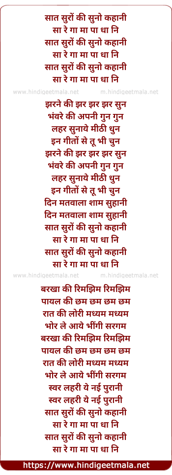 Lyrics of Saat Suron Kee - सात सुरों की सुनो कहानी