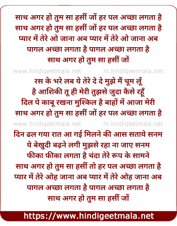 Lyrics of Saath Agar Ho Tum Sa - साथ अगर हो तुम सा