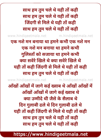 Lyrics of Saath Hum Tum Chale The Yahi To Kahi - साथ हम तुम चले थे यही तो कही