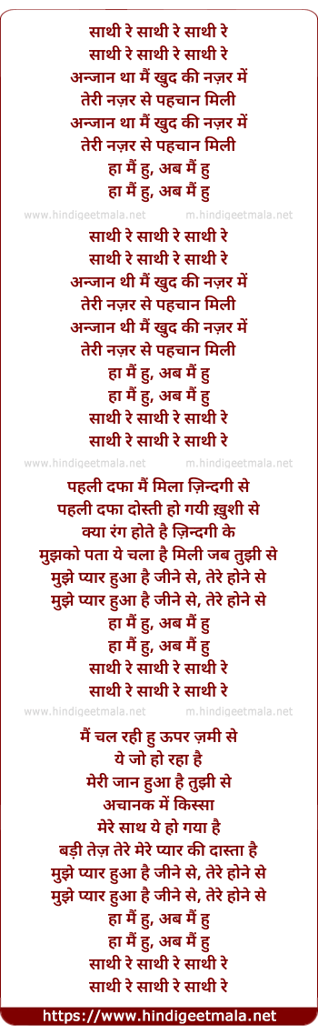 Lyrics of Sathi Re - साथी रे