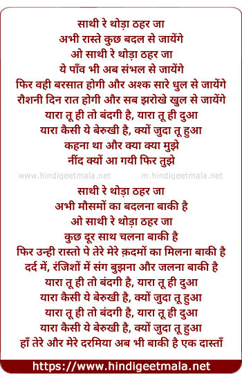 sathi rey thoda thehar ja