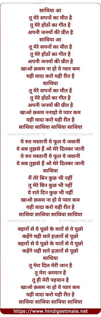Lyrics of Tu Mere Sapanon Kaa Mit Hai - तू मेरे सपनों का मीत है