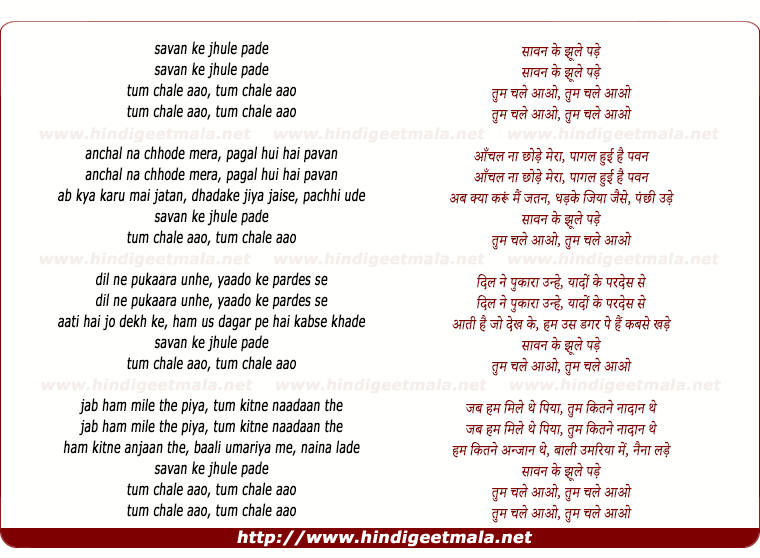 Lyrics of Saavan Ke Jhule Pade - सावन के झूले पड़े