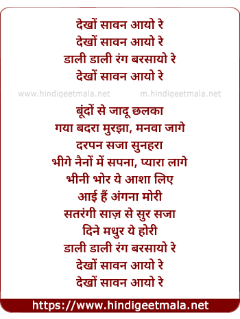 Lyrics of Saawan Aayo Re - सावन आयो रे