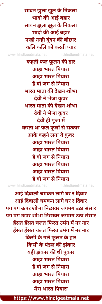 Lyrics of Saawan Jhoola Jhool Ke Nikla - सावन झुला झूल के निकला