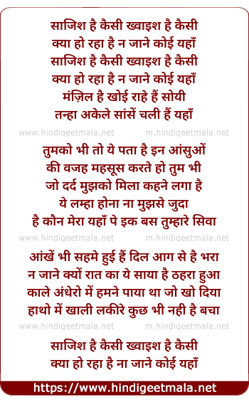 Lyrics of Saazish Hai Kaisi - साजिश है कैसी ख्वाइश है कैसी