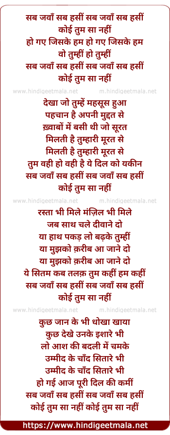 Lyrics of Sab Javan Sab Hasin Koi Tumasa Nahee - सब जवाँ सब हसीं कोई तमाशा नहीं