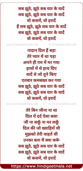 Lyrics of Sab Jhute - सब झूठे, झूठे सब यार के वादें