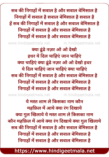 Lyrics of Sab Ki Nigaah Me Sawaal Hai - सब की निगाहों में सवाल है