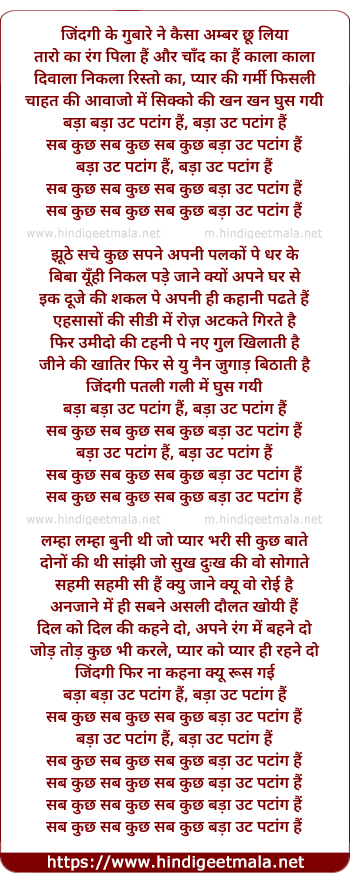 Lyrics of Sab Kuch Badaa Utt Patang Hai - सब कुछ बड़ा उट पटांग है