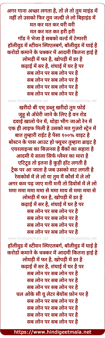 Lyrics of Sab Loan Par Hai - अगर गाना अच्छा लगता है, तो ले तो तुम माइंड में
