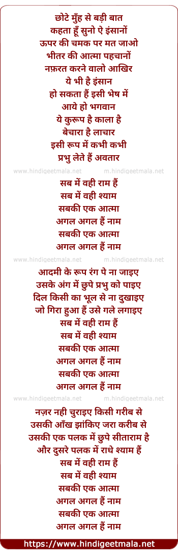 Lyrics of Sab Me Wohi Raam Hai - सब में वही राम हैं