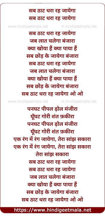 Lyrics of Sab Thaat Dharaa - सब ठाट धरा रह जायेगा