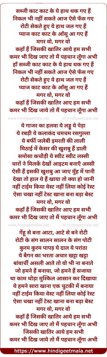 Lyrics of Sabji Kaat Kaat Ke - सब्जी काट काट के