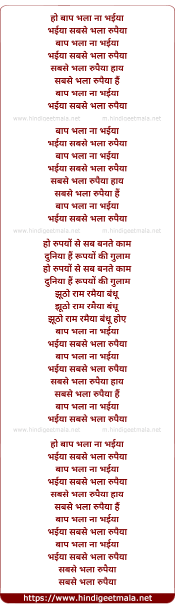 Lyrics of Sabse Bhala Rupaiya - हो बाप भला ना भईया