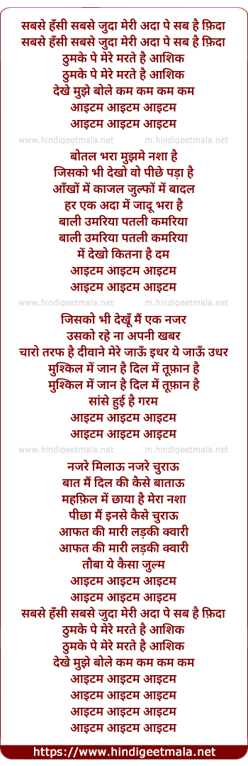 sabse hasin sabse juda meree ada pe sab hai fida