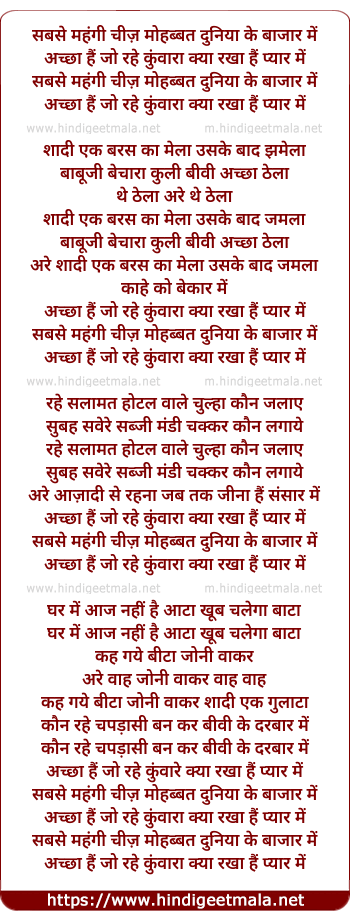 Lyrics of Sabse Mehangi Cheez Mohabbat - सबसे महंगी चीज़ मोहब्बत