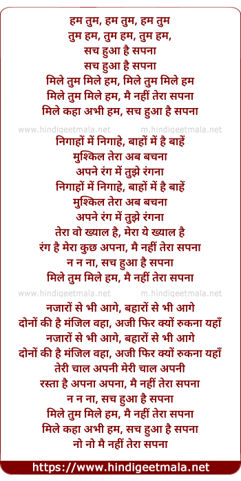 Lyrics of Sach Huva Hai Sapna - सच हुआ है सपना