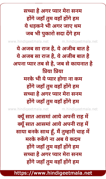 Lyrics of Sachcha Hai Pyar Mera Agar (Sad) - सच्चा है अगर प्यार मेरा अगर