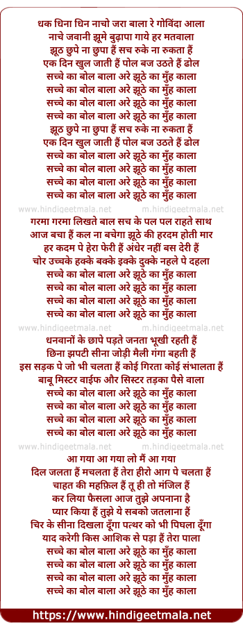Lyrics of Sachche Ka Bol Bala, Jhuthe Ka Munh Kala - सच्चे का बोल बला, झूठे का मुंह काला