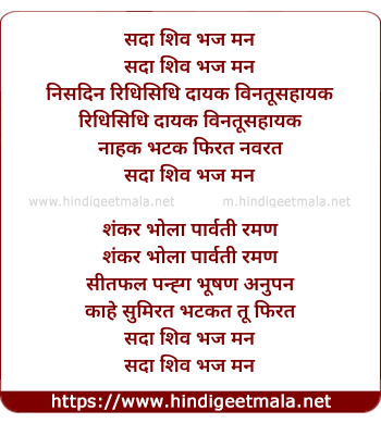 Lyrics of Sada Shiv Bhaj Man - सदा शिव भज मन
