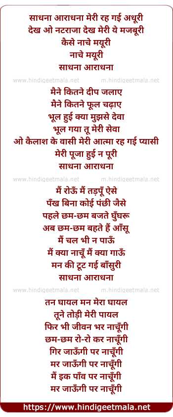 Lyrics of Sadhana Aaradhana Meree Rah Gayee Adhuree - साधना आराधना मेरी रह गई अधूरी