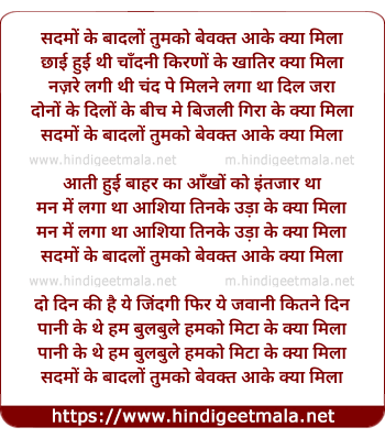 Poetic Translation - Lyrics of Sadmo Ke Badlo Tumhe - सदमों के बादलों तुम्हें