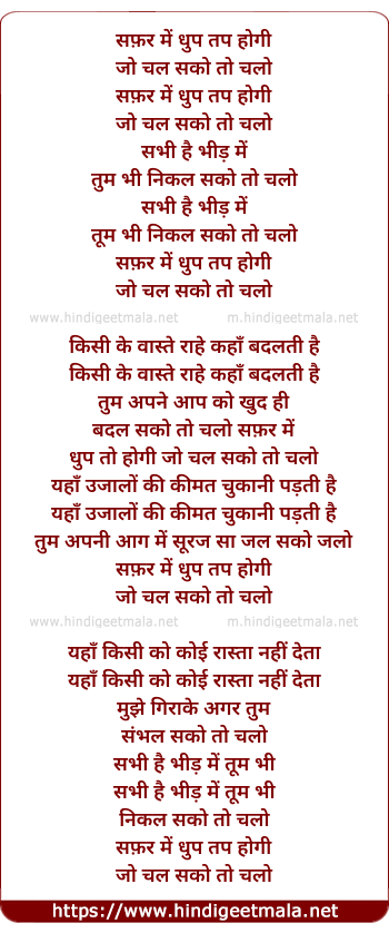 Lyrics of Safar Mein Dhup To Hogi - सफ़र में धुप तप होगी
