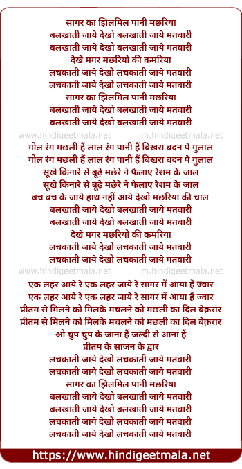 Lyrics of Sagar Ka Jhilmil Pani Machhariya Balkhati Jaye - सागर का झिलमिल पानी मछरिया बलखाती जाये