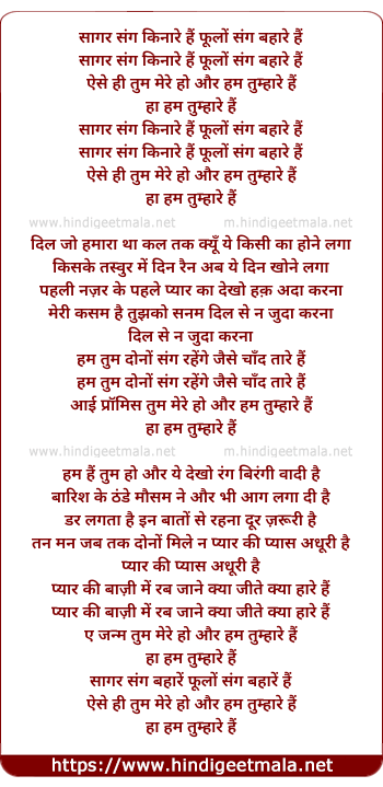 Sagar Sang Kinare Hai Phulo Sang Bahaare Hai - सागर संग किनारे हैं फूलों संग बहारे हैं
