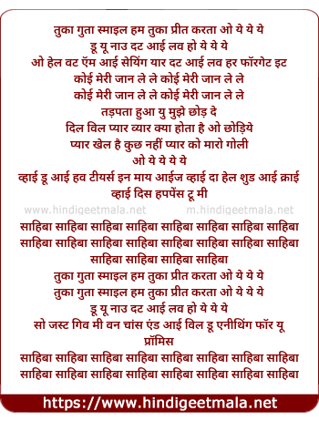 Lyrics of Sahiba Sahiba 2 - साहिबा साहिबा