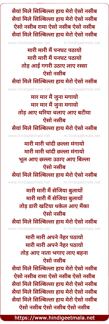 Lyrics of Sainya Mile Silbilla - सैयां मिले सिल्बिल्ला