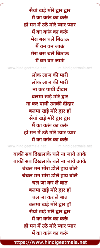 Lyrics of Saiya Khade More Dwar Me - सैयां खड़े मोरे द्वार में