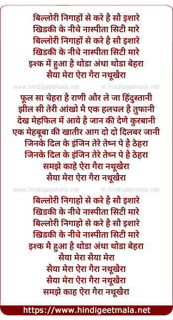 Lyrics of Saiya Mera Aira Gaira Natthu Khairaa - सैया मेरा ऐरा गैरा नथूखैरा