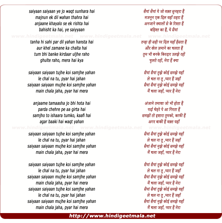 Lyrics of Saiyaan (Lucky Ali) - सैयां सैयां ये जो वक़्त सुनहरा हैं
