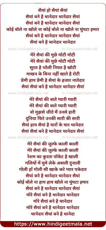 Lyrics of Saiyan Bane Hai Thanedaar - सैयां बने है थानेदार
