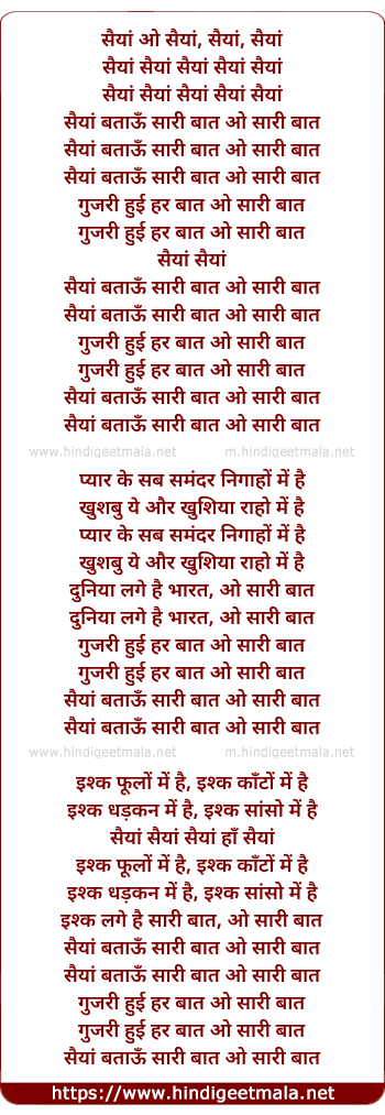 Lyrics of Saiyan Batau Saree Bat O Saree Bat - सैयां बताऊँ सारी बात ओ सारी बात