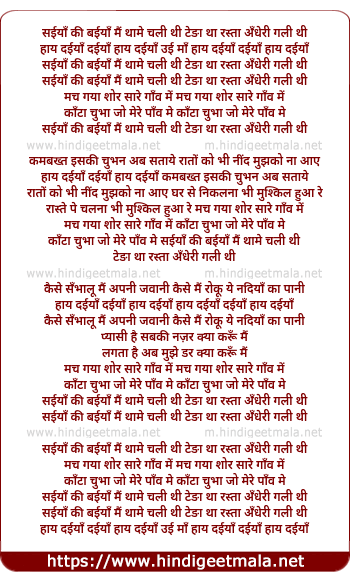 Lyrics of Saiyan Kee Baiyan Mai Thame Chalee Thee - सईयाँ की बईयाँ मैं थामे चली थी