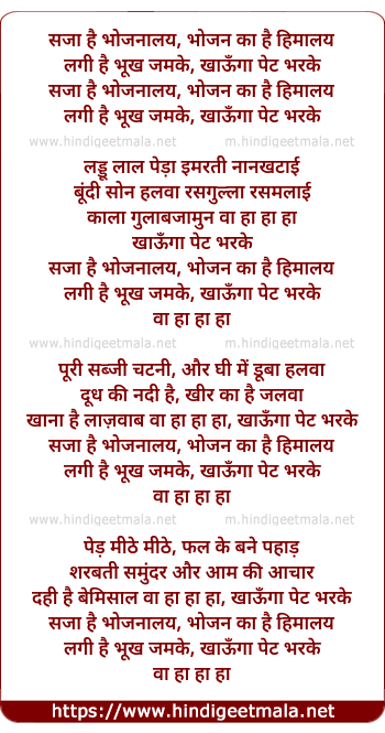Lyrics of Saja Hai Bhojanaalay - सजा है भोजनालय