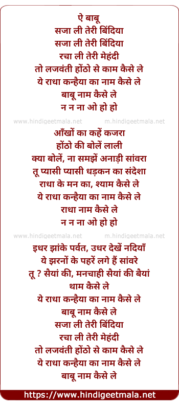 Lyrics of Saja Li Teri Bindiya - सजा ली तेरी बिंदिया