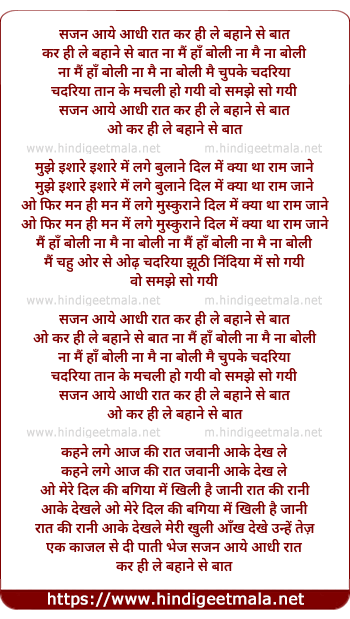 Lyrics of Sajan Aaye Aadhi Raat - सजन आये आधी रात