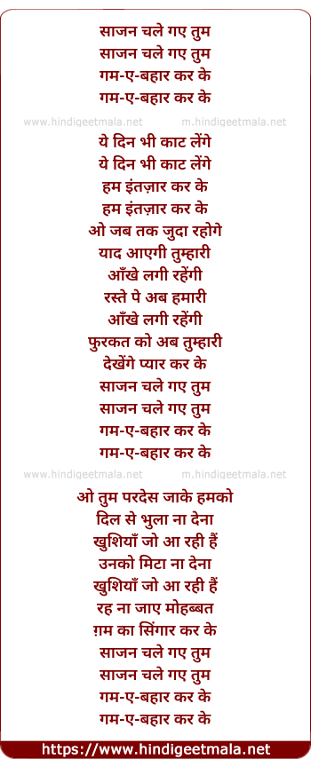 Lyrics of Saajan Chale Gaye Tum - साजन चले गए तुम