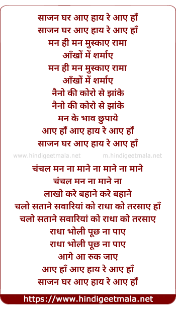 Lyrics of Sajan Ghar Aaye - साजन घर आए हाय रे आए हाँ