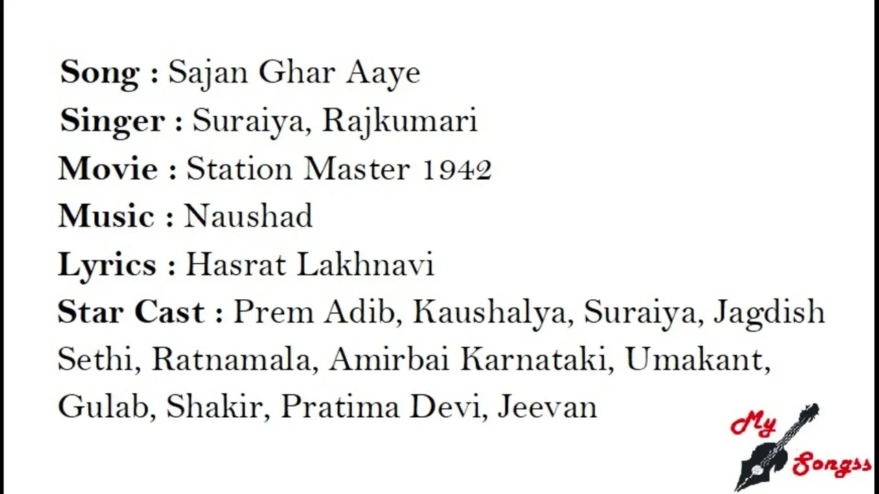 SingerAmirbai Karnataki, G M Durrani, Rajkumari, Suraiya, Prem Adeeb, Kaushalya