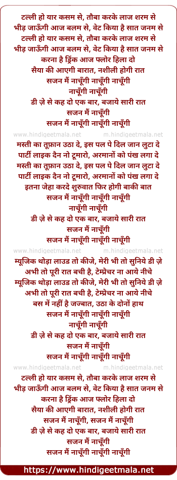 Lyrics of Sajan Main Nachungi - टल्ली हो यार कसम से, तौबा करके लाज शरम से